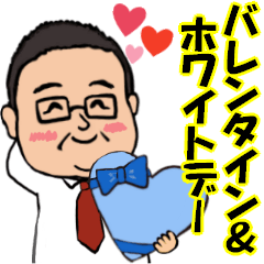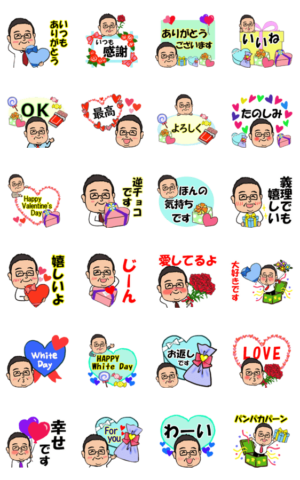 中高年シリーズ。見やすいデカ文字挨拶付き。男性からも気持ちをスタンプで伝よう♪旦那、男性、ラブラブ、夫婦、愛妻、家族、ホワイトデー、おデブ、太っている、めがね
