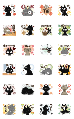 定番のフレーズやクスッと笑えるリアクションで会話が弾む黒ねこスタンプです♥まちゃの部屋 より発売