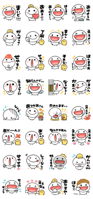 ちびマロの日常で毎日使える関西弁スタンプです♡ 棒人間のちびマロと黄色い鳥のぴよこ♡近畿地方♪大阪府/奈良県/京都府/兵庫県/滋賀県/三重県/和歌山県ぴよたぬき より発売