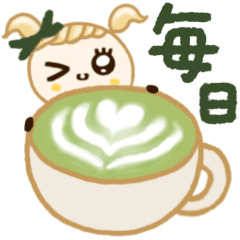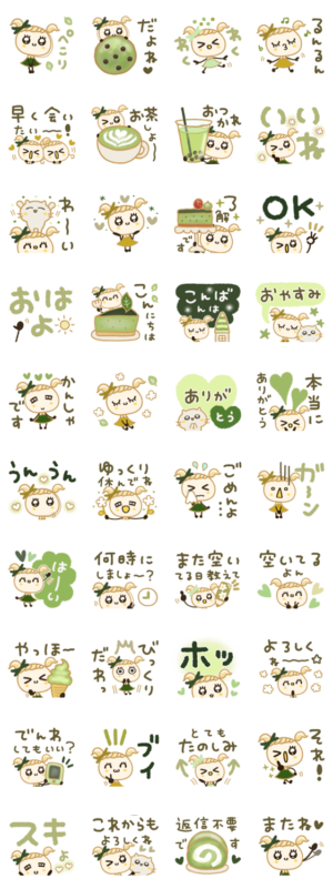 ほぺ香ちゃんシリーズ♡全体的に抹茶をイメージしたカラーやイラストで、渋かわいい毎日スタンプです♡小さな幸せ/感謝あさごぱん より発売