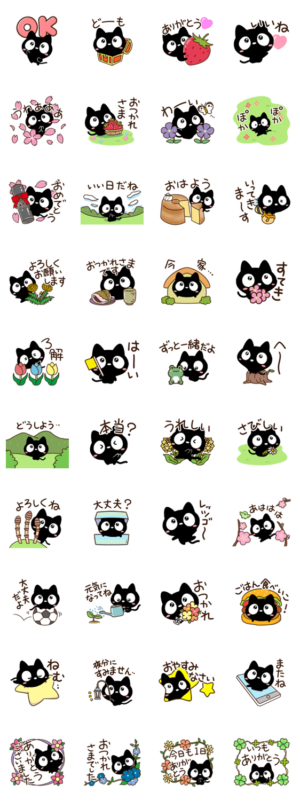 『クロネコすたんぷ』の絵文字と着せかえもあります!のどかな雰囲気と花に囲まれていている、くろねこ。和やかな雰囲気で送ることができる、黒猫スタンプです。【かたこ】