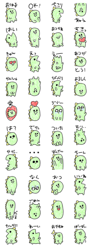 子供の落書き風。シュールなミニ恐竜 スタンプ画像一覧
