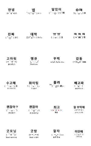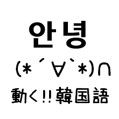 【動く】韓国語スタンプ。韓国語⇔日本語に、ふりがな(ルビ)付き。男女とわず使いやすい顔文字スタンプ。グローバルにお使いください:) ハングル/英語/シンプルyellow23 より発売