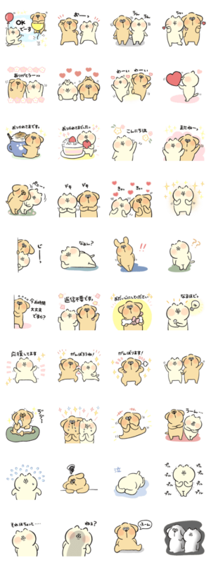 猫のミッケと犬のクーピーのなかよしペアスタンプの登場。どんな場面でも使いやすい可愛いスタンプです。