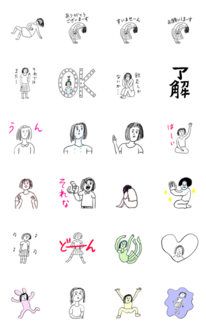 日常のさりげない仕草をシンプルでシュールな女子のスタンプで表現してみました。動きま〜す!イッレ・コスヤ より発売