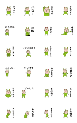 いつもの面白スタンプ(かわいい黄緑ウサギ編)いつもの面白さに、かわいいがプラスされました。あいさつ言葉多め