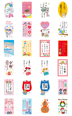 誕生日/あけおめ/年賀/成人式/結婚/出産/ひなまつり/初節句/こどもの日/父の日/母の日/敬老の日/クリスマス/入学/卒業/入園/卒園/合格