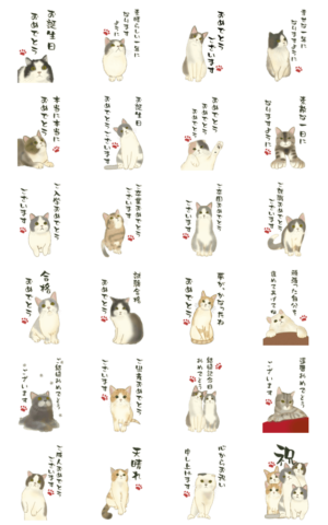 モフ猫達が大事な人に伝えます。 (猫の日/猫/猫スタンプ/ハチワレ猫/おめでとう/誕生日/合格/入学/卒業/シンプル/還暦/出産/結婚/成人/敬語/丁寧/可愛い/HAPPY BIRTHDAY ※このスタンプはトークルームで大きく表示されるBIGスタンプです。MAYA より発売
