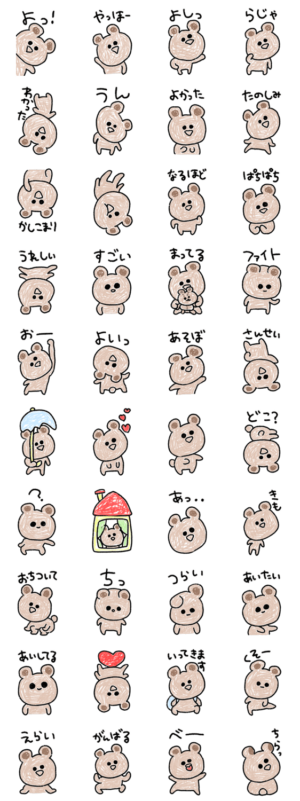 子供の落書き風②シュールなミニくまです。 ※このスタンプはトークルームで大きく表示されるBIGスタンプです。eribo より発売