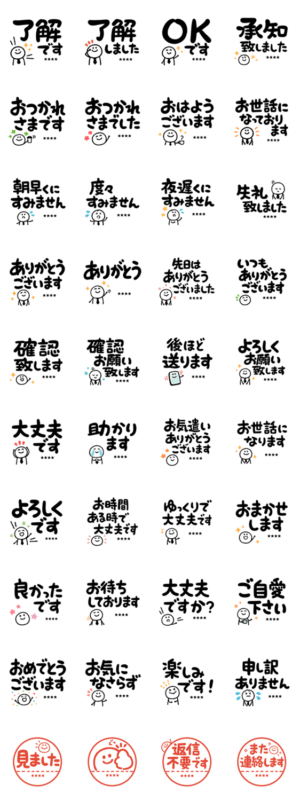 何かと丁度いい、固くなりすぎず砕けすぎない、ビジネス会話で使いやすい、名前を入れられるビジネスカスタムスタンプです。敬語丁寧で、大きく見やすいデカ文字。NEWいねこむ より発売