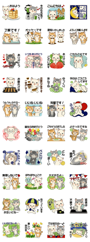 可愛い猫さんたちの使いやすい挨拶や優しいメッセージの日常スタンプです。楽しく使って元気を運んで下さい。mifumi より発売