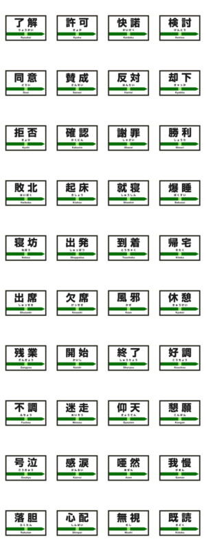 駅名の看板であいさつ(了解、賛成、既読) スタンプ画像一覧