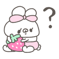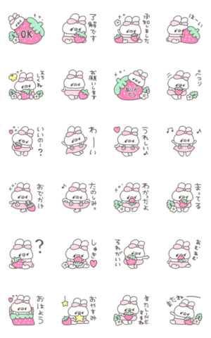ピンクのいちごが可愛いうしゃぎのスタンプ。enacoco より発売