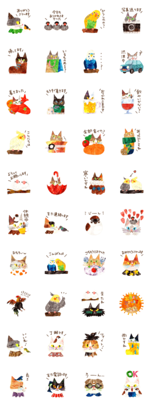 仲良しなネコと鳥の日常で使えるスタンプです。aya nariai より発売