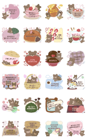 くまのぬいぐるみのメッセージスタンプが春の装いで登場!さくらやいちごのスイーツや、ひな祭り、イースター、こどもの日など春にぴったりなものを集めました♪ 現在この商品は一部のスマートフォン版LINE 10.3.0以上のトークルームでのみ使用できます。動作環境の最新情報はヘルプをご確認ください。まぁ工房 より発売
