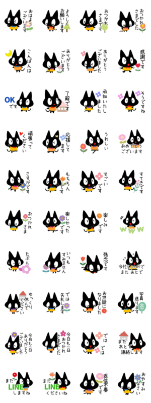 メルヘンチックな、かわいいクロネコのスタンプです。北欧風・ガーリーねこの基本的な文字のスタンプです。くろネコ好きな方にぜひ。【かたこ】かたこ より発売