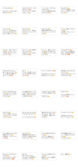特徴、あるある、メンヘラ、句読点、むかつく、面白い、ネタ、ギャグ、笑える、例、元ネタ、構文、バカ、アホ、気持ち悪い、オジサン、絵文字、コツ