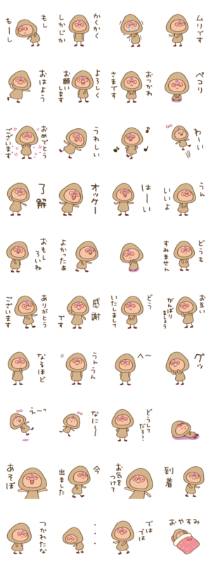 栗の妖精マロンガール。「了解」「へ〜」から「うんいいよ」まで。気楽に使える、ゆるい言葉がいっぱい。家族、学校、お仕事でも。Mami / エストループ より発売