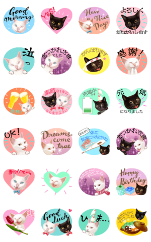 【白ねこ&黒ねこ】動く!ペットたち スタンプ情報