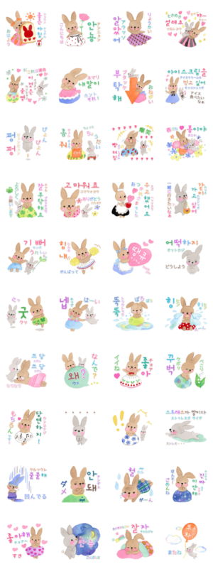 絵本作家Rokoが、水彩で描くかわいいウサギ。ウサギと一緒に楽しく学べるかわいいスタンプです。便利な日本語のふりがなつき!韓国の友達との交流に使えます。