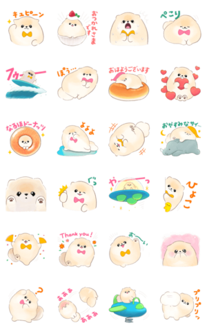 以前無料で配布された《ふわふわポメのぽぽち × LINE証券》の再リリース+おまけ8点を加えたスタンプです。