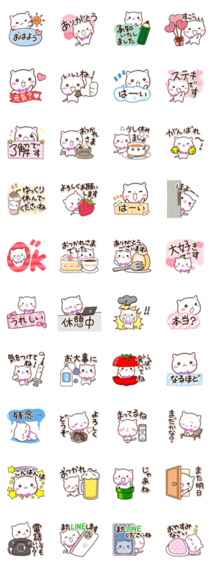 『シロネコすたんぷ』の相手を思いやったりできる猫スタンプ。よく使う言葉等もいっぱいの白猫スタンプ。しろねこ好きな方にぜひ。絵文字も着せかえもあります。【かたこ】