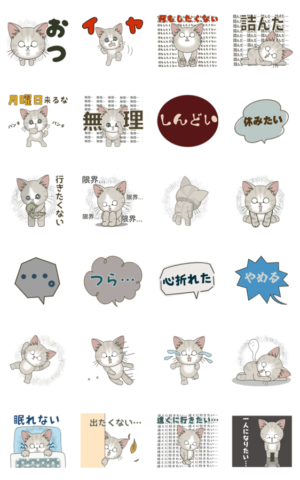 (疲れた/月曜日/猫/猫スタンプ/やる気がない/五月病/限界/詰んだ/友達/ママ/パパ/仕事/学校/家事/バイト/部活/ネガティブ/ツライ/病み