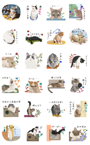 【2023猫の日記念】愛猫家のみなさまから募集した猫ちゃんがスタンプになりました!個性豊かな猫ちゃんの姿をお楽しみください♪ イラスト:オリハラケイコさん