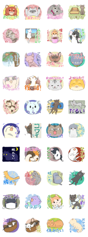 みんな元気になりますように。ミケ、ロシアンブルー、シャム、アメショー…いろんな種類のネコちゃんを描きました。riosippo より発売