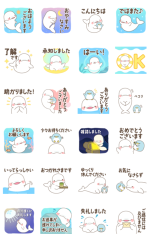 マイペースなシロイルカとペンギンの飛びだすスタンプです♪ 大きな文字&ゆったりした動きで見やすい!DECOR より発売