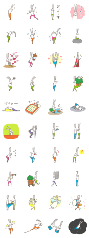 タイツを自由自在に操り続ける、謎多きうさぎタイツのスタンプです。うさぎタイツたちと一緒に暮らしをもっと楽しく、素敵な日々を過ごしましょう。くらきち より発売