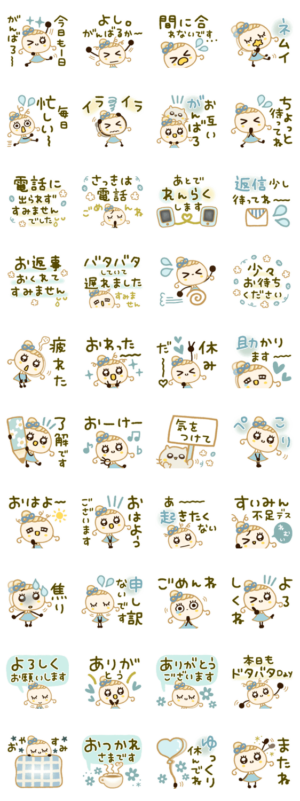 ほぺ美ちゃんシリーズ♡毎日忙しい方がよく使いそうなフレーズを、たくさん詰め込みました♪毎日お疲れ様です♡小さな幸せ/感謝あさごぱん より発売