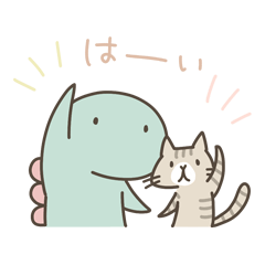 ゆるい恐竜たちと猫の毎日使えるスタンプです。ゆるーく使って楽しんでください!絵文字バージョンもあります。K.Sasara より発売