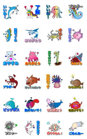海の生き物のゆるいスタンプToyohusa Nomura より発売