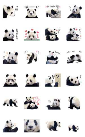 実写パンダのアニメーションスタンプ。コンピューターの力で動いているのが露骨なものもあるが、それが味にもなっている。