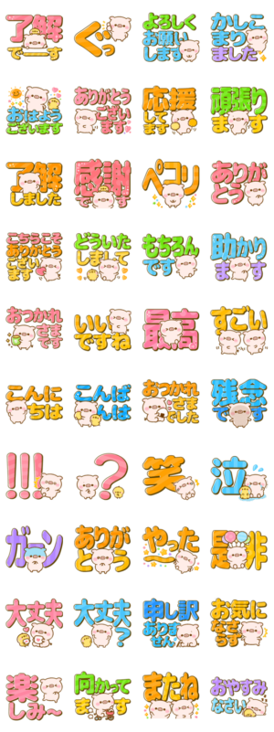 新生活やお仕事で使える見やすくカラフルな長文でか文字スタンプ♡こぶたのぽこちゃんのほのぼの可愛い♡敬語もいっぱいで毎日使えるスタンプです♪