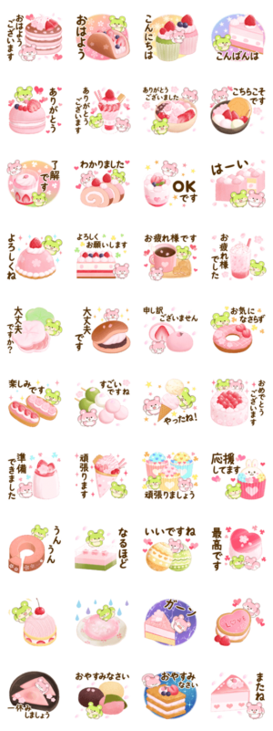 桜や苺、イースターモチーフ等、春らしい可愛いスイーツとリス。 日常会話で役に立つ毎日使いやすい敬語メインのスタンプです。毛玉ピストル より発売
