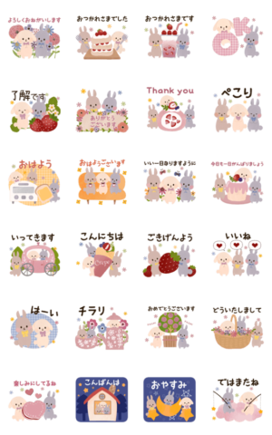 ♡なかよしうさぎ♡毎日使える日常スタンプ スタンプ画像一覧