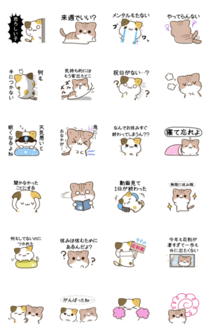 お疲れ気味 やる気が出ない時に使えるゆるかわ三毛猫とキジトラ白猫のアニメーションスタンプ第12弾 仕事 不眠 体調不良 春夏秋冬 花粉症