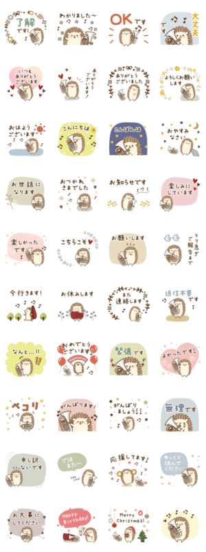 ユーフォ*可愛いハリネズミ♡使える敬語 スタンプ画像一覧