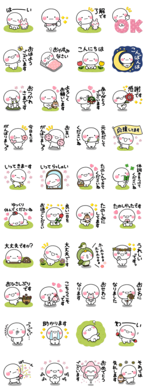 丸いフォルムと、2頭身のキャラクターがふんわりと心地よい、ナイスなスタンプです。