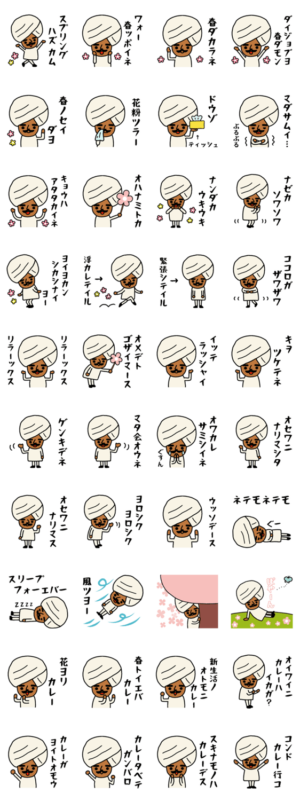 若干日本語カタコトのかわいいインド人のおじさんスタンプ(春の季節にぴったり編)。カレーごり押しだけど日常生活でも楽しく使えます。カレー好き・インド好きな方ぜひ。