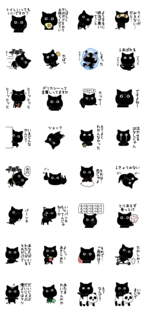 26個目です。ネコ好き集まれ!クロネコだよ!ぼく黒猫だよ!トーク画面の背景黒だと見づらくなるよ!気をつけてね!type-E より発売