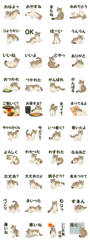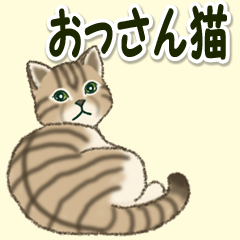 強面おっさん風親父ネコがのっそり。よく使うシンプルで短い言葉が大きな文字で入っていますので、男性や年配の方もどうぞ。つのっち より発売