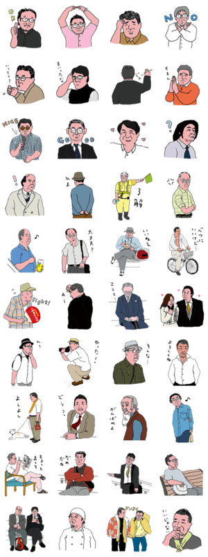 おじさんの仕草や言葉には、長年社会を歩いてきた人生がつまっています。その隠れた素晴らしさ、若者にはまだ備わっていない味わいを楽しむ個性的なスタンプが登場!小学館 より発売