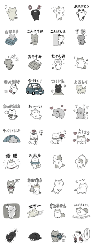 目が点のネコのスタンプがたくさんあってかわいいと思いました。
