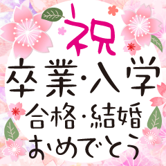 祝!!合格・卒業・卒園・入学・入園・誕生日・出産・成人・結婚・就職・結婚記念日。キャラクター少なめの誰にでも送りやすい1つあると便利な華やかなお祝いスタンプです