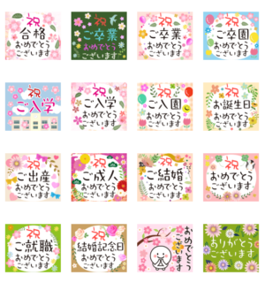 【卒業/入学/合格/成人/結婚/出産】お祝い スタンプ情報