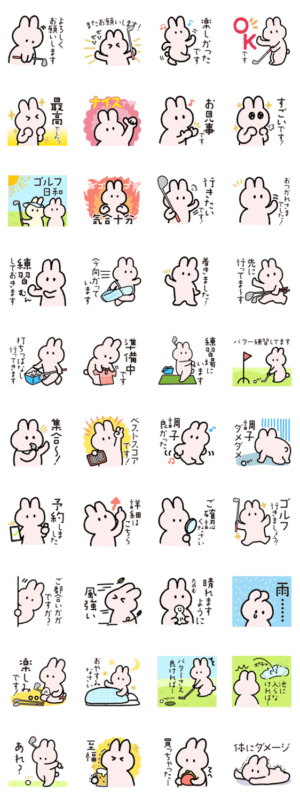 敬語・丁寧語で使いやすい、ゴルフを楽しむうさぎのスタンプです!日常で使える挨拶もあります。 ゴルフ/ゴルファー/ゆるかわ/かわいい/女子/動物/アニマルはしもち より発売