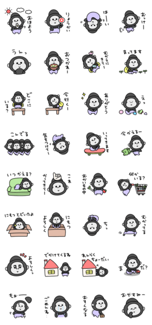 過保護に育ったゴリラの家族連絡スタンプです。eribo より発売